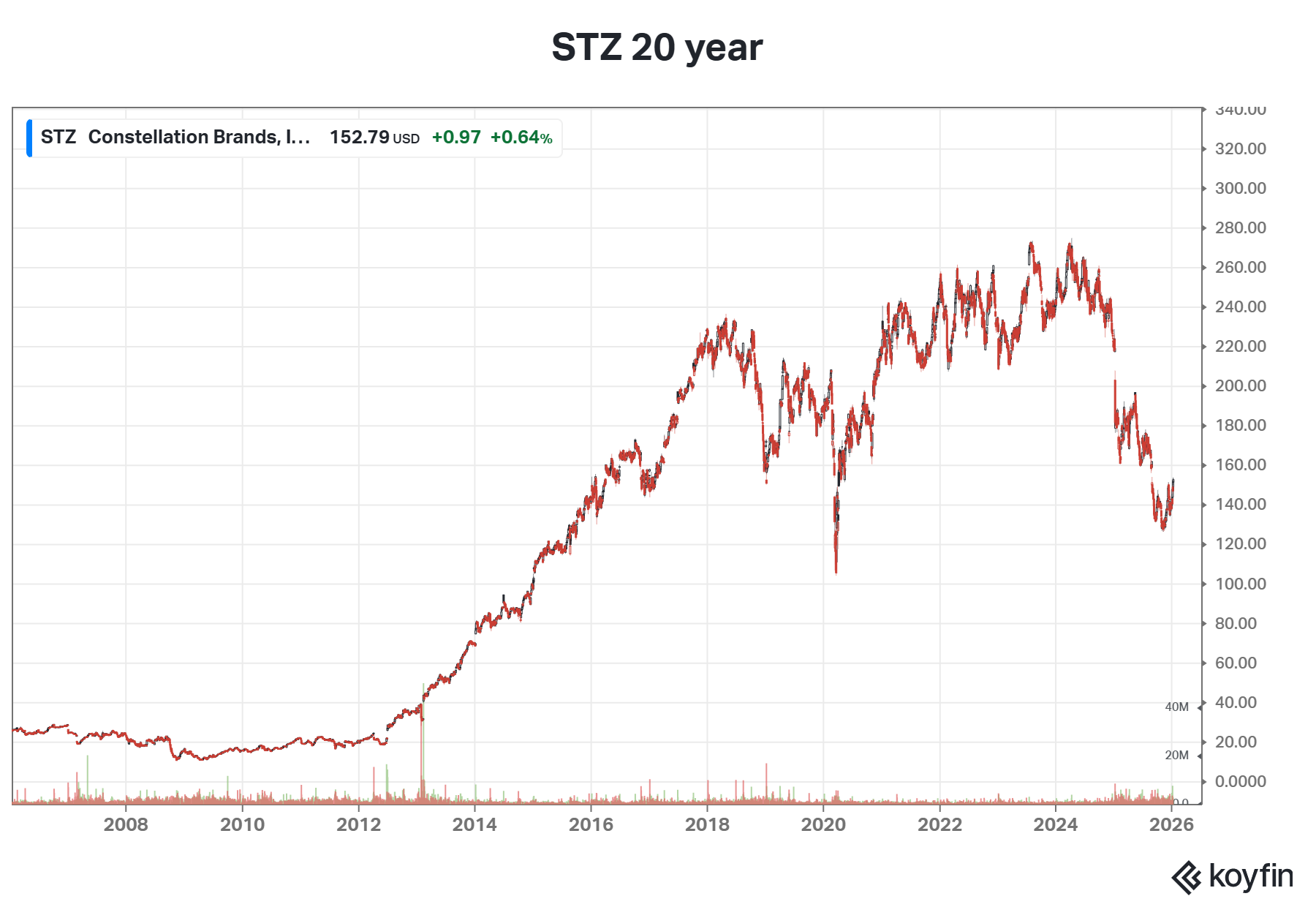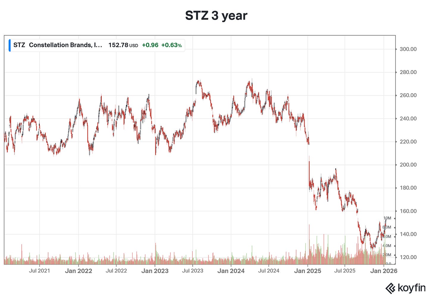 If you bought STZ in 2021 thinking the post-pandemic “Roaring Twenties” would last forever, you’re currently nursing a world-class hangover. From that perspective, the sky is absolutely falling. The growth has stalled, the “easy money” is gone, and the “vibes” are at an all-time low.